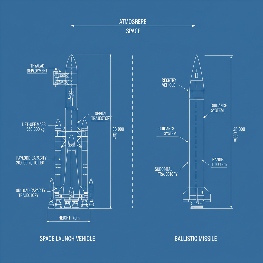 Space exploration technology was directly derived from military research. A rocket capable of carrying a human to space utilizes nearly the same technology as an Intercontinental Ballistic Missile (ICBM) delivering a nuclear warhead.
