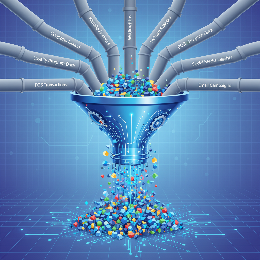All operational data stores (ODS) and external Data Warehouse inputs merge into a massive central entity: 'Coupons Issued'. This centralization point becomes a critical dependency.