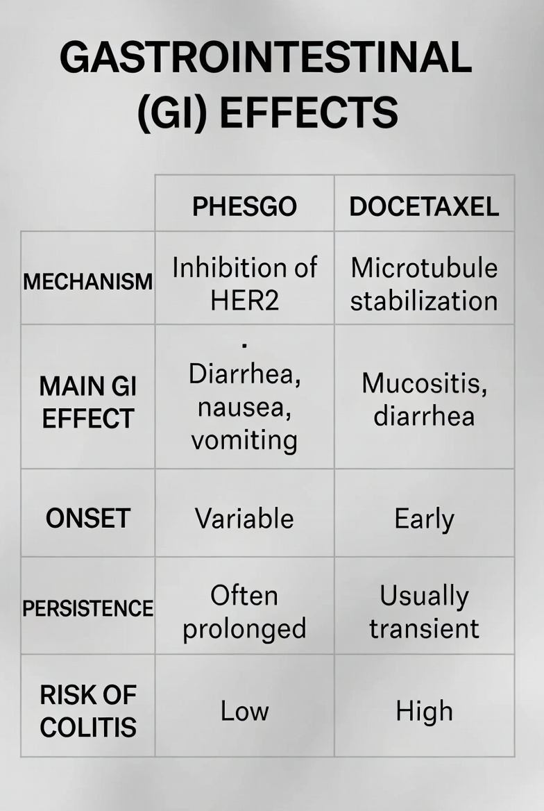 Phesgo: HER2/EGFR inhibition → impaired mucosal repair