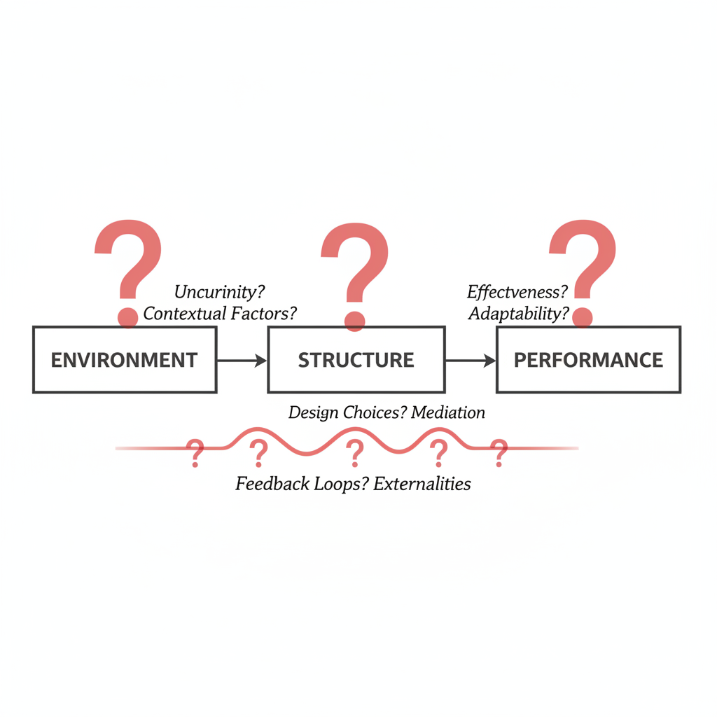 Implies one-way causality. Overlooks managerial agency and feedback loops (Structure can impact Environment).
