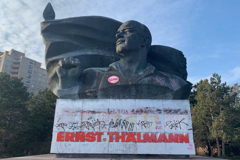 Thälmann war omnipräsent. Straßen, Schulen, Betriebe und Parks wurden nach ihm benannt. Das bekannteste Beispiel: Das 14 Meter hohe Denkmal in Berlin-Prenzlauer Berg (eingeweiht 1986).