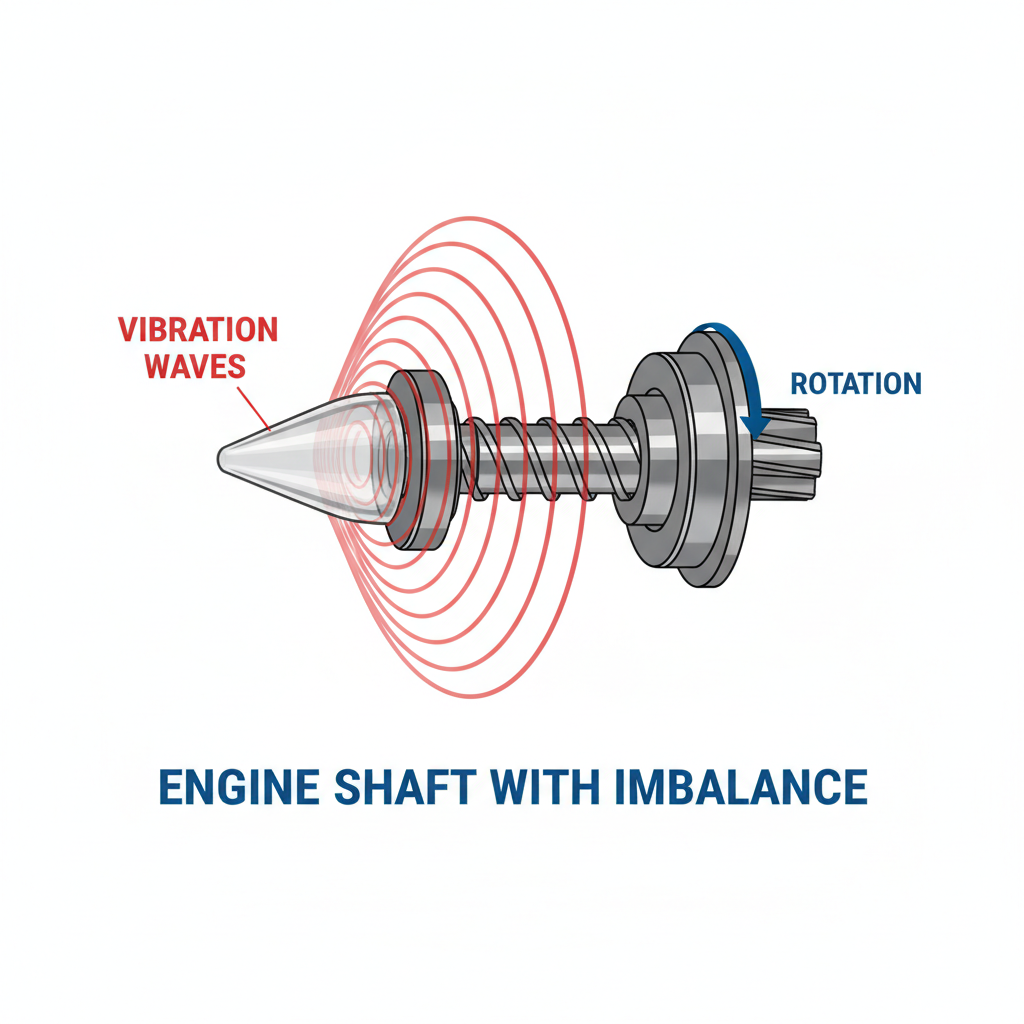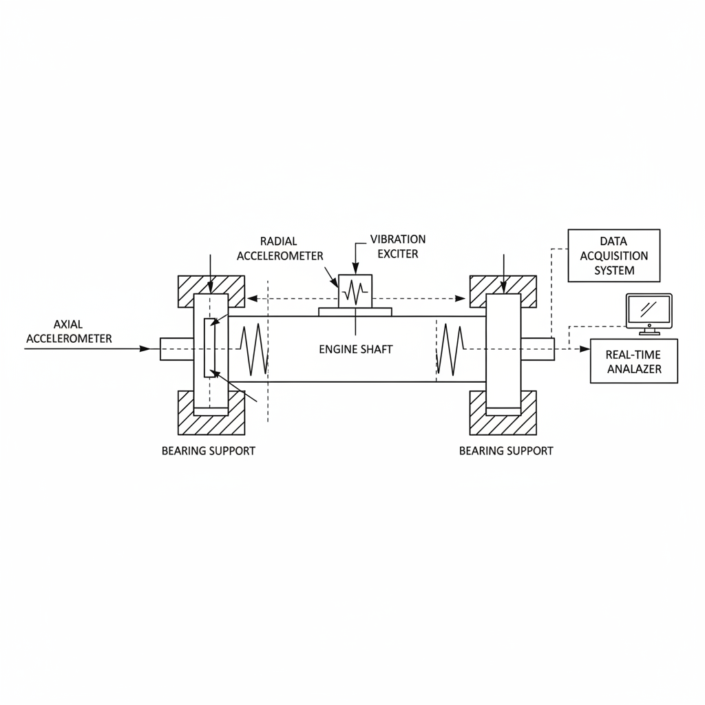 <strong>Experimental Setup:</strong><br>Accelerometers installed on engine shaft in radial and axial planes.<br><br><strong>Test Variances:</strong><br>1. Balanced Control<br>2. Minor Imbalance (<2g offset)<br>3. Major Imbalance (>4g offset)<br><br><strong>Analytical Approach:</strong><br>Frequency Domain FFT (Fast Fourier Transform) used to isolate resonant frequencies and correlate peak amplitudes to mass offsets.