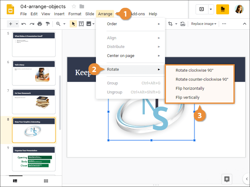 Align Objects: Select multiple items and use Arrange > Align to make them organized.