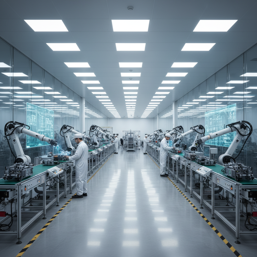 <b>Degree of Automation: HIGH</b><br>To maintain 'affordability' while ensuring 'high quality', manual variance must be minimized. Injection molding and PCB assembly require fully automated cells. Motor integration utilizes semi-automated cobots.