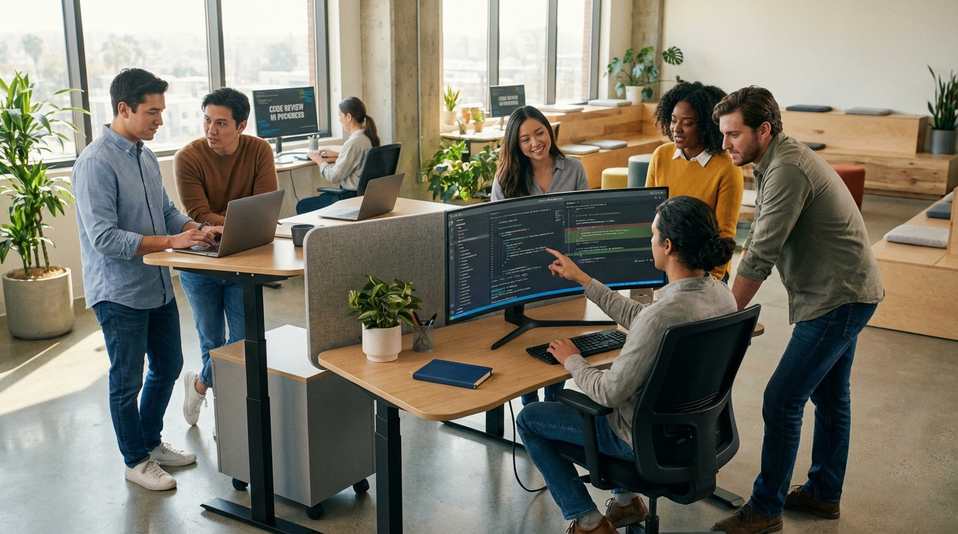<ul style='margin:0; padding-left:20px;'><li>Task tracking (Jira/Trello)</li><li>Daily stand-ups</li><li>Code reviews</li><li>Real-time server monitoring</li></ul>