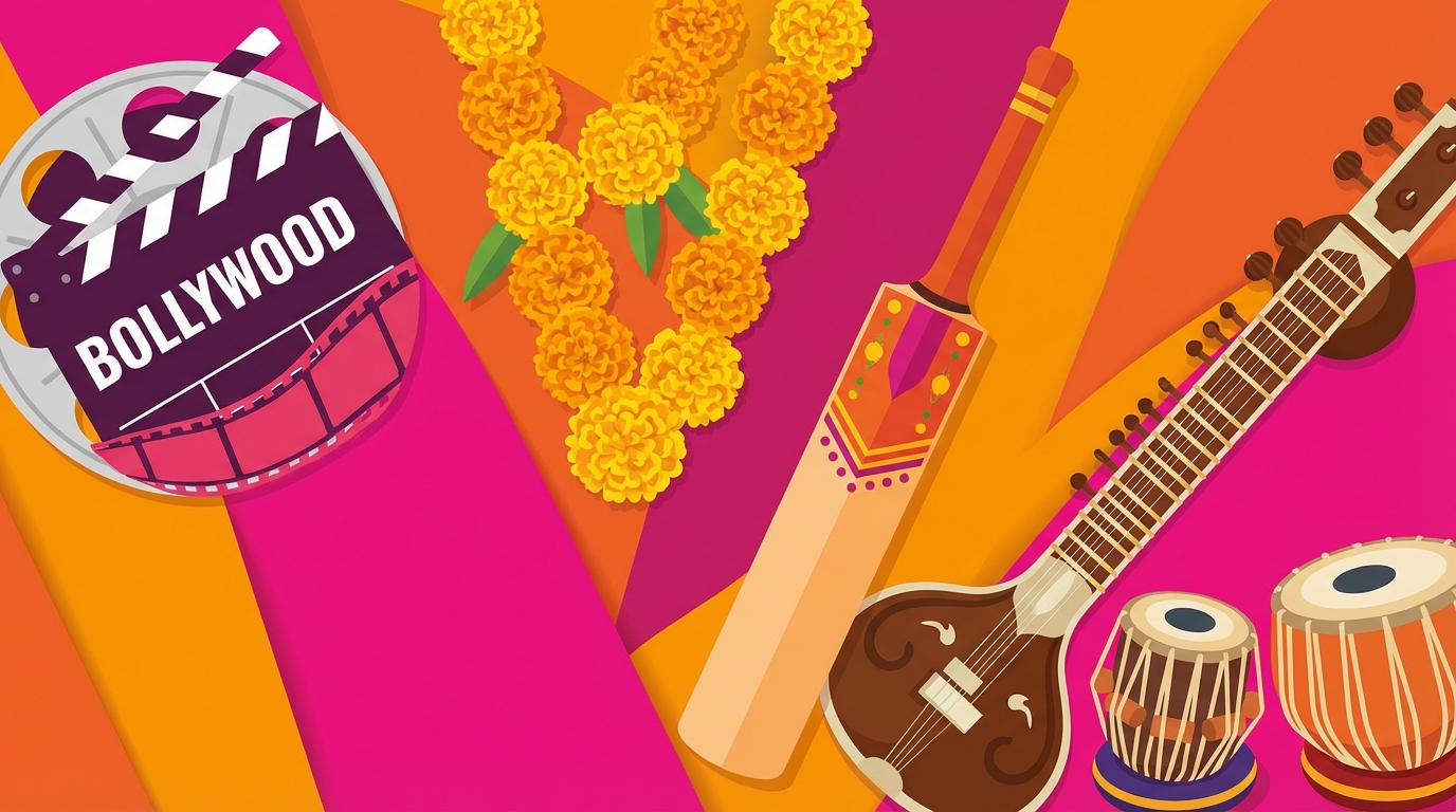 <ul><li><strong>Bollywood:</strong> History, mechanics, and key films</li><li><strong>Music:</strong> Defining characteristics and Western influence</li><li><strong>Pop-Culture:</strong> Trends, lifestyle, and modern icons</li><li><strong>The Cultural Clash:</strong> Tradition meeting Modernity</li></ul>