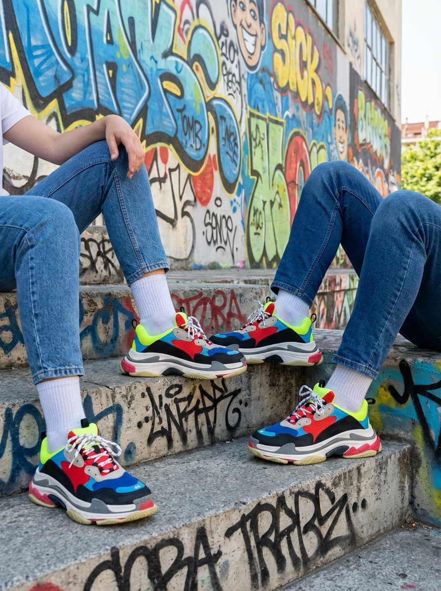 Les sneakers passent du stade à la rue, devenant des accessoires de mode quotidiens portés par les artistes et célébrités.