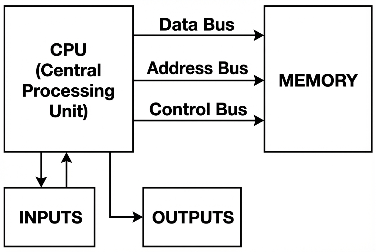 <ul style='list-style:none; padding:0; margin:0;'><li style='margin-bottom:25px; display:flex;'><span style='color:#d32f2f; font-weight:bold; margin-right:15px; font-size:1.2em;'>1.</span><div><strong style='color:#d32f2f;'>Fetch:</strong><br>The CU retrieves the next instruction from RAM using the program counter (PC). This ensures the CPU knows which instruction to run next.</div></li><li style='margin-bottom:25px; display:flex;'><span style='color:#d32f2f; font-weight:bold; margin-right:15px; font-size:1.2em;'>2.</span><div><strong style='color:#d32f2f;'>Decode:</strong><br>The instruction decoder interprets the binary opcode, determining the operation and operands. Without decoding, the CPU cannot understand what action to take.</div></li><li style='margin-bottom:25px; display:flex;'><span style='color:#d32f2f; font-weight:bold; margin-right:15px; font-size:1.2em;'>3.</span><div><strong style='color:#d32f2f;'>Execute:</strong><br>The ALU or other components perform the calculation or transfer. Execution produces the result and updates registers or memory.</div></li><li style='display:flex;'><span style='color:#d32f2f; font-weight:bold; margin-right:15px; font-size:1.2em;'>4.</span><div><strong style='color:#d32f2f;'>Conclusion:</strong><br>The cycle repeats continuously, allowing the CPU to run complex programs by processing one instruction at a time in a predictable flow.</div></li></ul>