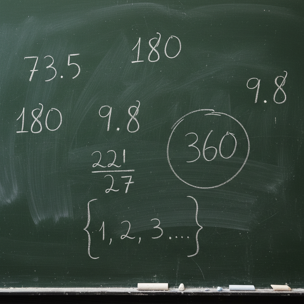 Сандар: Бардык натуралдык, бүтүн же бөлчөк сандар.