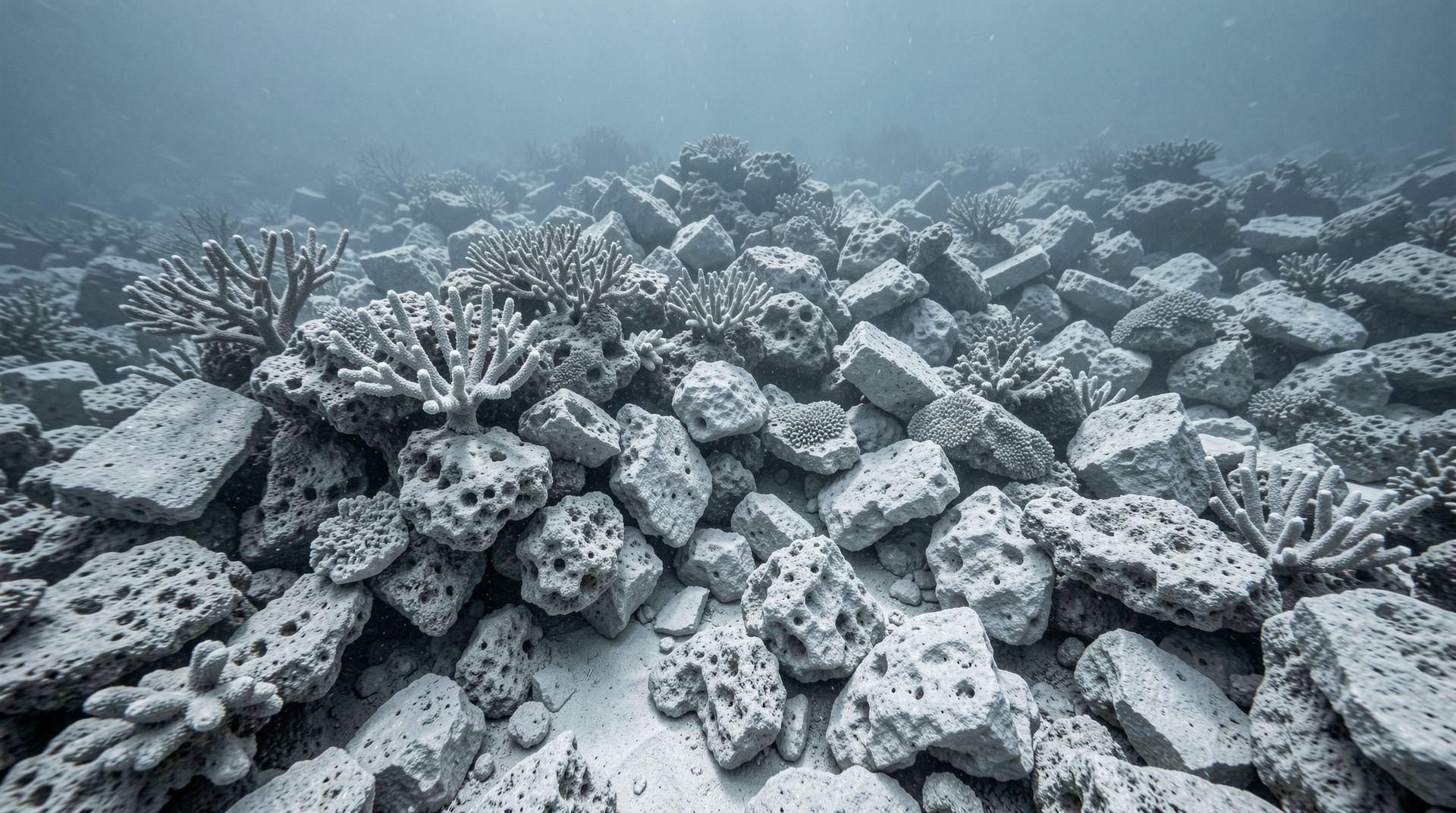Coral is actually a living animal. It builds a skeleton from calcium carbonate (CaCO₃) — the same compound in seashells and limestone. When coral dies it loses all color, hardens, and turns grey. That's exactly what I cut my foot on. But why is it dying?