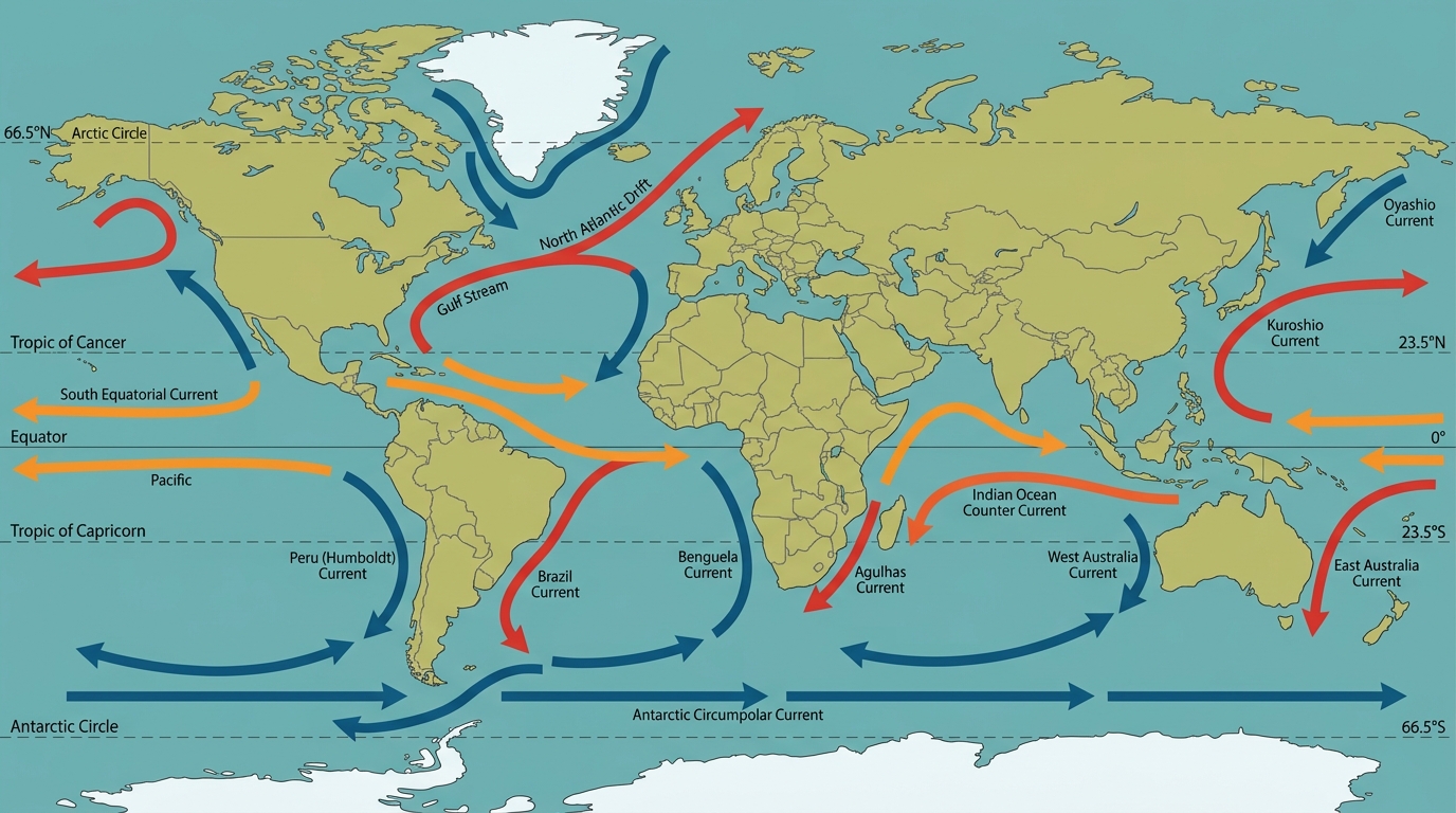 WORLD OCEAN CURRENTS — Warm & Cold