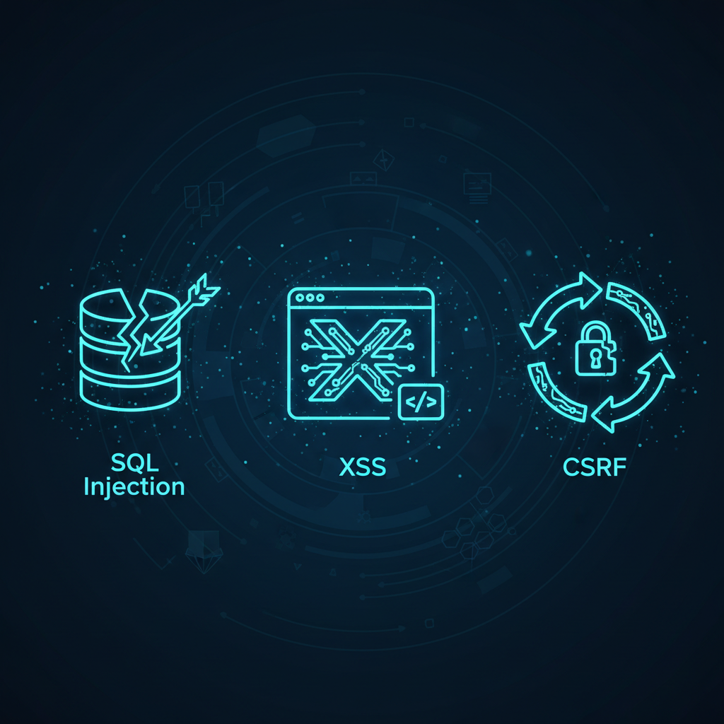 <li>SQL Injection (SQLi)</li><li>Cross-Site Scripting (XSS)</li><li>Cross-Site Request Forgery (CSRF)</li>