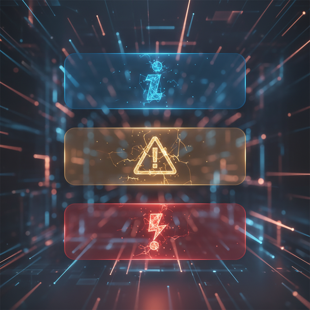 <strong>Design Strategy:</strong><br>• Clear, concise messages.<br>• Avoidance of technical jargon.<br>• Color-coded priorities (Info vs. Critical).<br><br><strong>Key Examples:</strong><br>• <span style="color:#00d4ff">Blue:</span> Password change reminders.<br>• <span style="color:#ffaa00">Yellow:</span> Login from new device alerts.<br>• <span style="color:#ff4444">Red:</span> Suspicious transaction warnings.