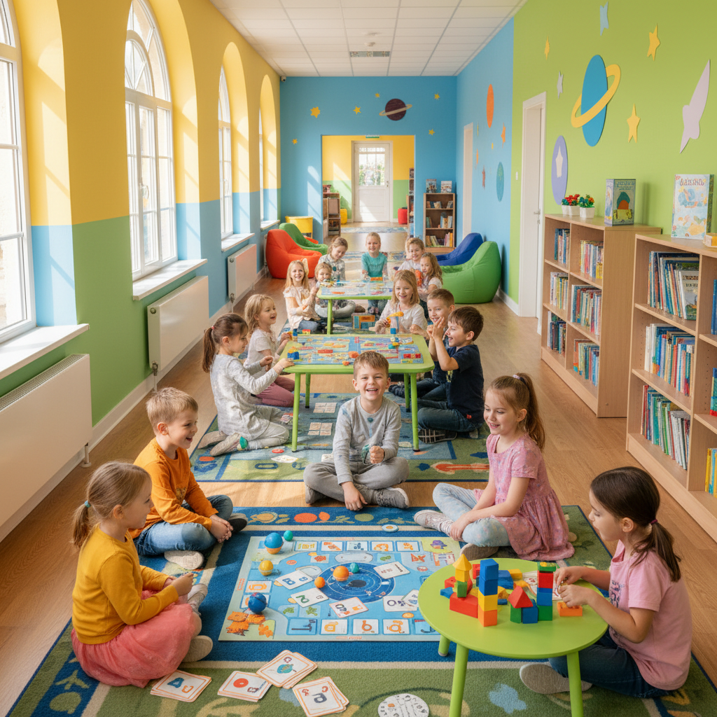 <b>«Көңілді үзіліс»:</b> Арнайы оқу аймақтарында танымдық ойындар мен викториналар ұйымдастырылды (5 «Г» сыныбы мысалында).<br><br><b>«Еңбек бәрін жеңбек» көрмесі (09.10.2025):</b> «Жұмысшы мамандықтар жылы» аясында өтті. Мақсаты — еңбекке құрмет және кәсіби бағдар беру. Оқушылар мамандық иелері туралы әдебиеттермен танысты.