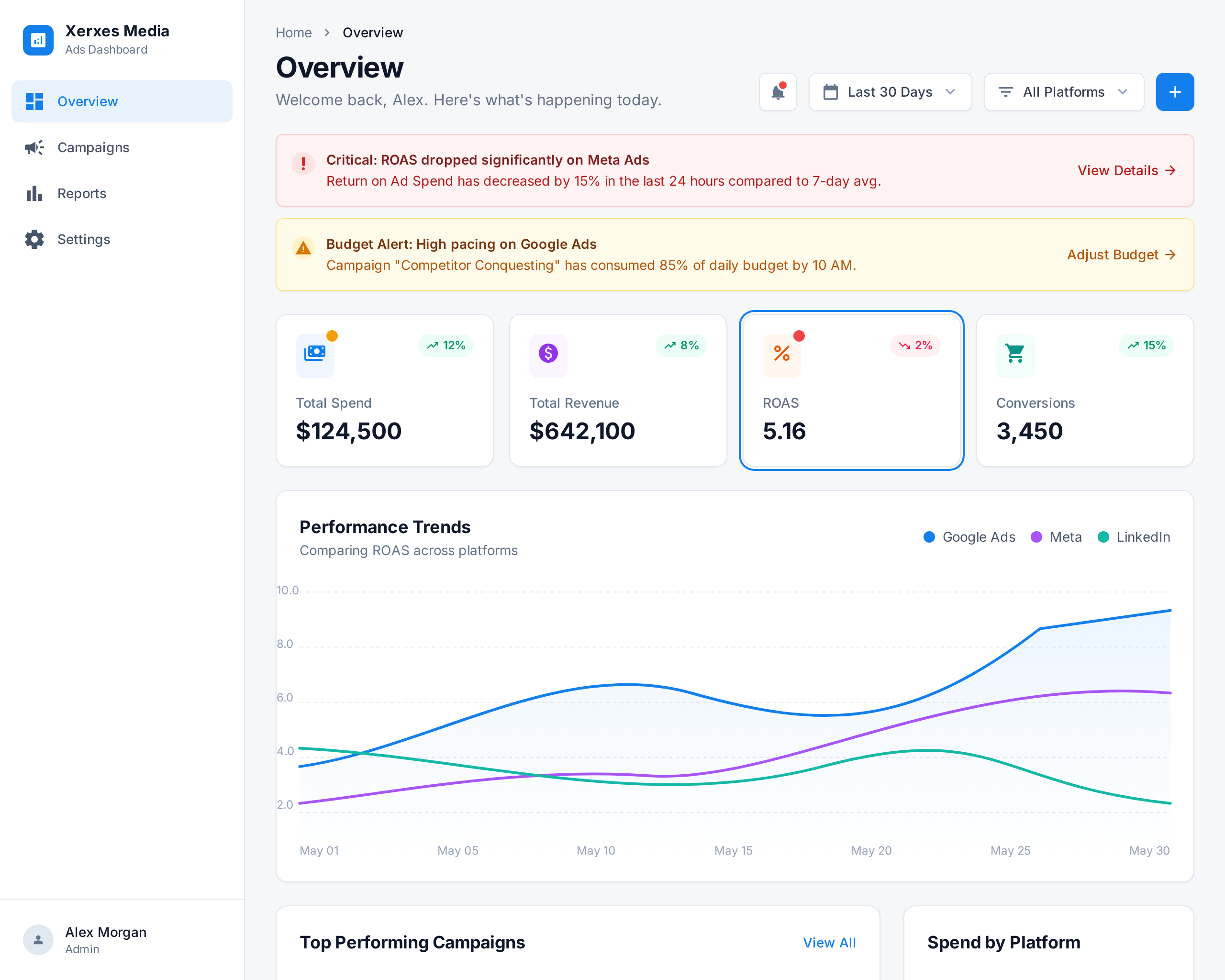 Discover Xerxes Media's unified dashboard for real-time ROAS tracking and cross-platform ad intelligence for e-commerce, agencies, and DTC brands.