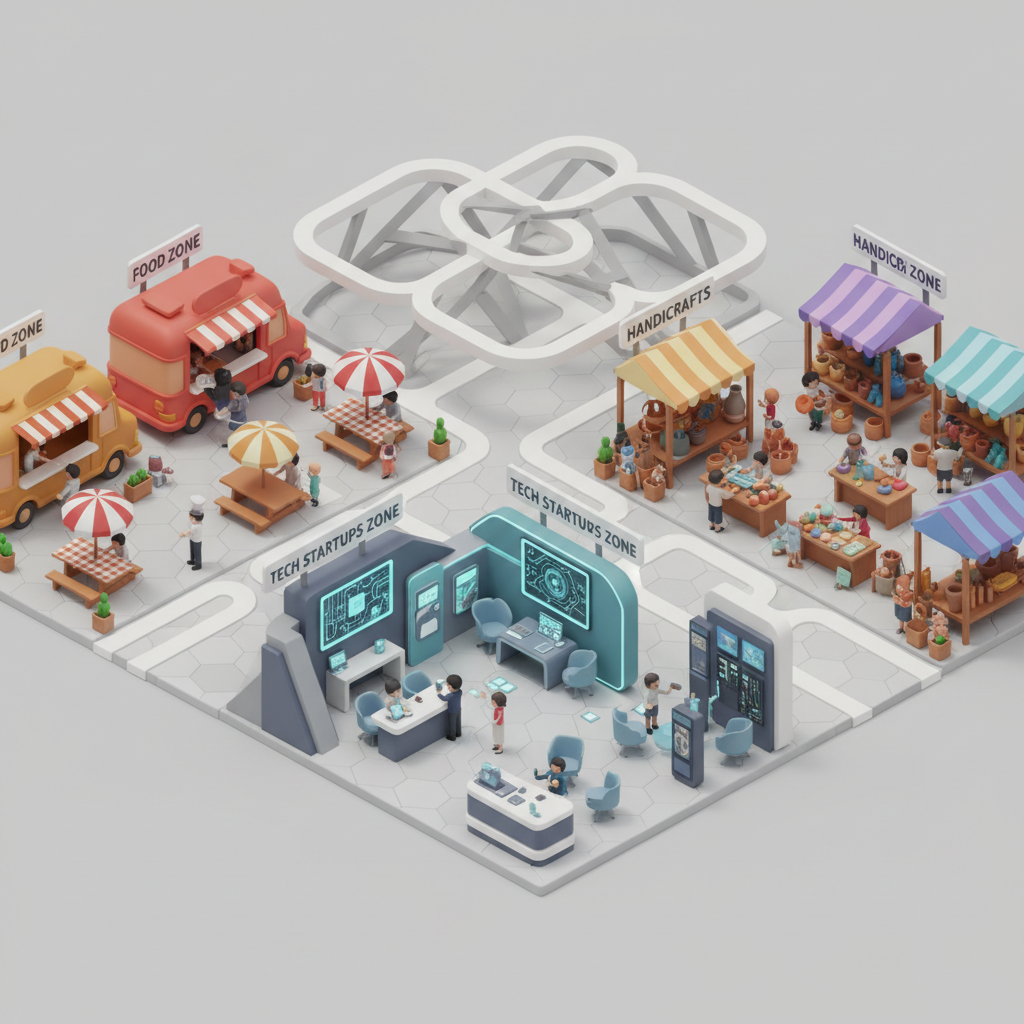 <strong>MSME आधारित ज़ोन:</strong><br>उद्यम ग्राम (SHG), उद्यम नगर (Industry), स्टार्टअप ज़ोन (Innovation)।<br><br><strong>फूड फेस्टिवल:</strong><br>पारंपरिक मालवा व्यंजन, फूड प्रोसेसिंग व पैकेजिंग जागरूकता।<br><br><strong>ज्ञान एवं जागरूकता पवेलियन:</strong><br>पंजीकरण मार्गदर्शन, वित्तीय परामर्श और विभागीय योजना जानकारी (Paperless)।