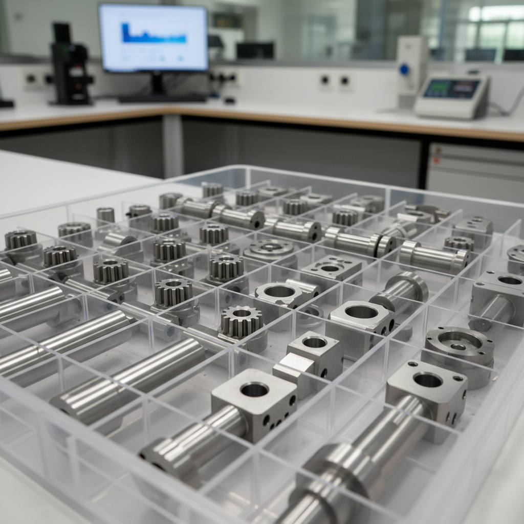 Remove all burrs and clean parts of chips and coolant. Handle every piece carefully using trays or separators to avoid damage to finished surfaces. Strictly segregate parts into OK, Rework, and Reject categories.
