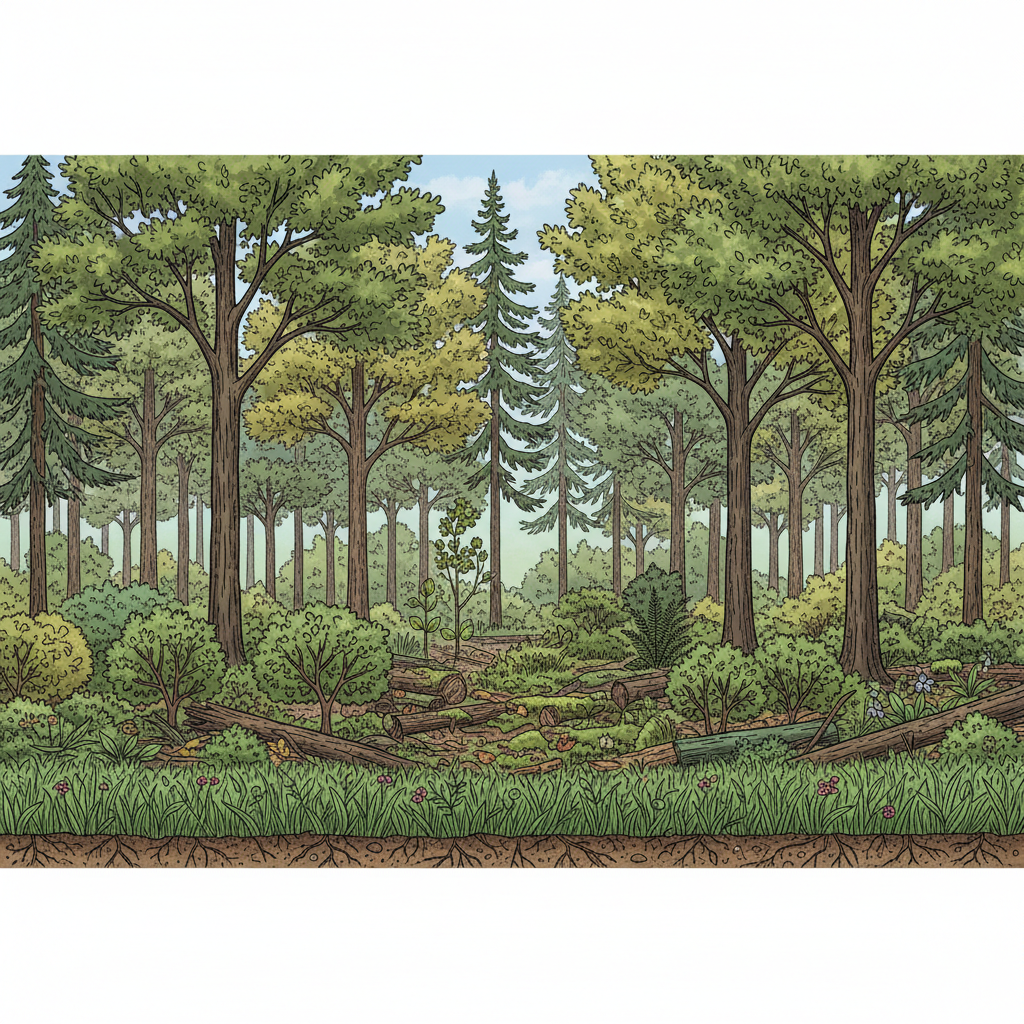 Сколько ярусов (этажей) обычно выделяют в смешанном лесу?