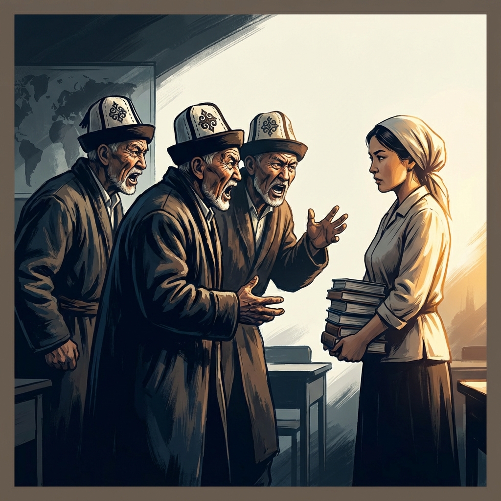 Айылдагы байлар жана туугандары кыздардын окуганына каршы чыгышат. Алардын ою боюнча, кыз баланын орду – үйдө.