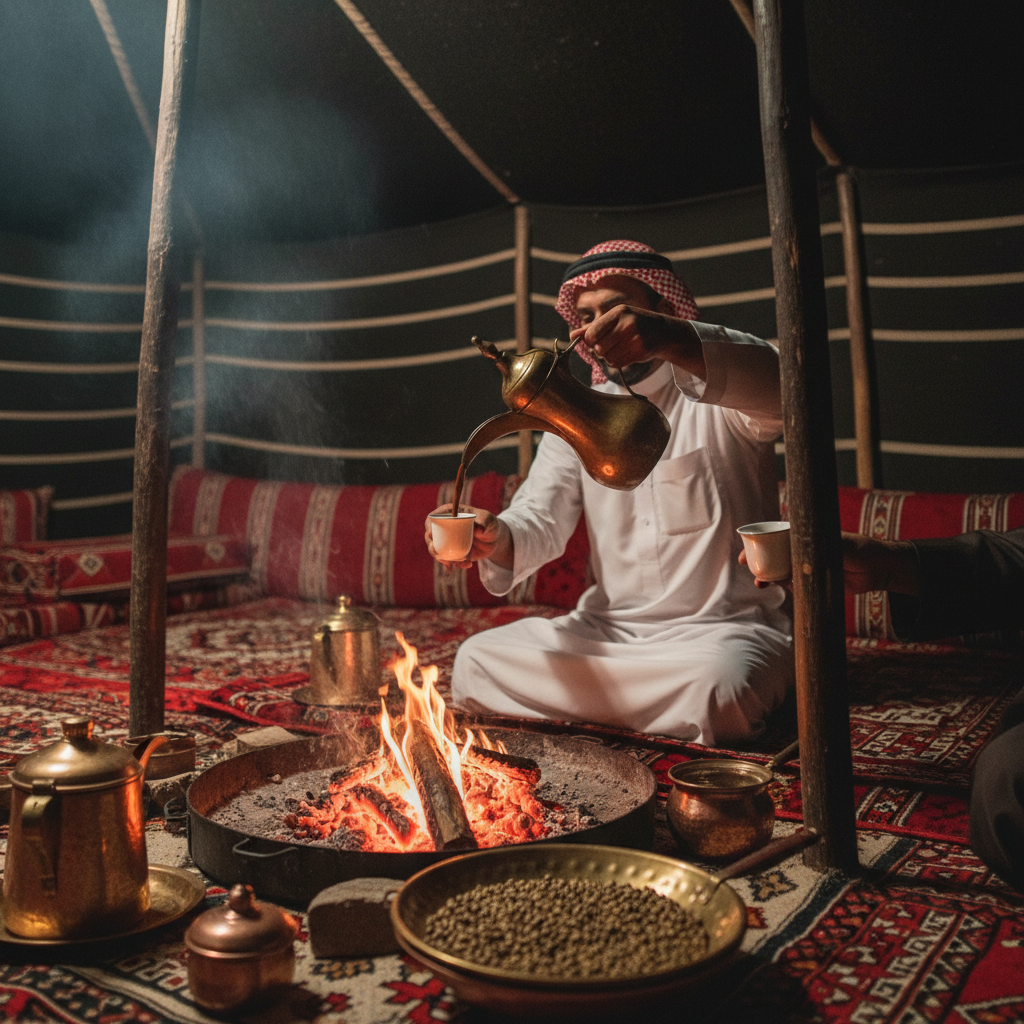טקס הקפה: הכנת הקפה המר והגשתו לאורחים הוא ריטואל של כבוד וקבלת פנים.