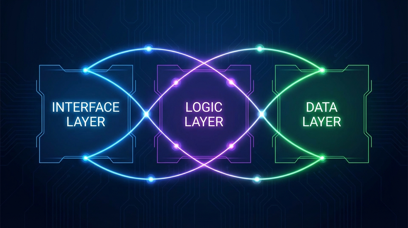 Layers: UI (menu/HUD), Game Logic, Data (levels/constants).