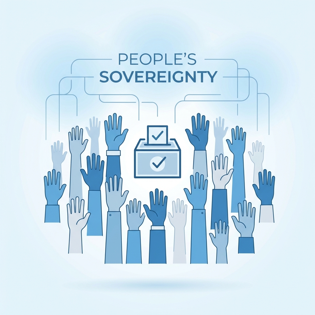הדמוקרטיה מבוססת על כך שהעם הוא מקור הסמכות. האזרחים בוחרים את השלטון, הרוב מחליט, אך קיימת חובה מוחלטת להגן על זכויות המיעוט.