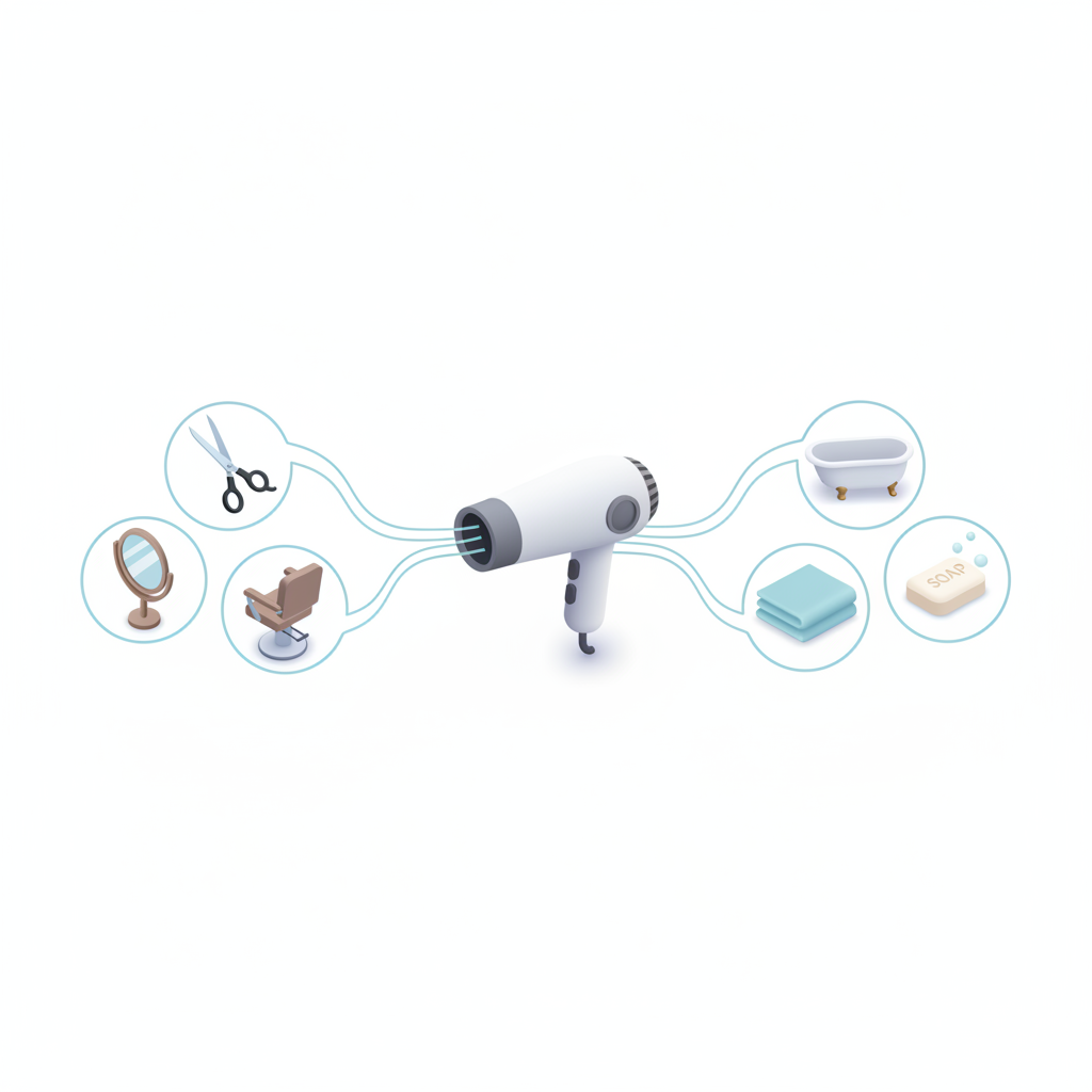 דוגמה: הימצאות 'מייבש שיער' תפעיל אסוציאציות שונות בהתאם להקשר - מספרה מול חדר אמבטיה.