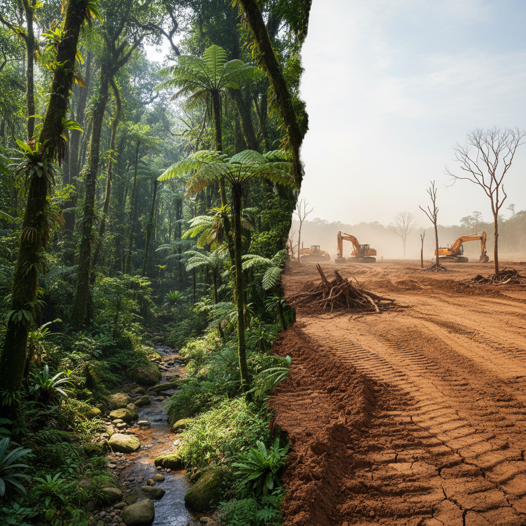 Abholzung des Regenwaldes (z.B. Amazonas), Staudammprojekte und illegaler Bergbau zerstören die Lebensgrundlage, ohne formelle Ausweisung.