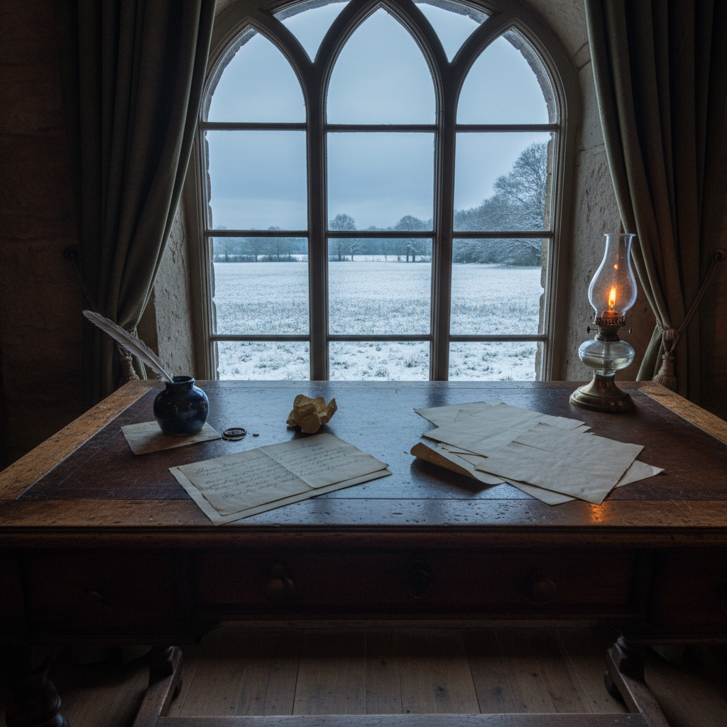 Setting: 'The darkest evening of the year' (Solstice).