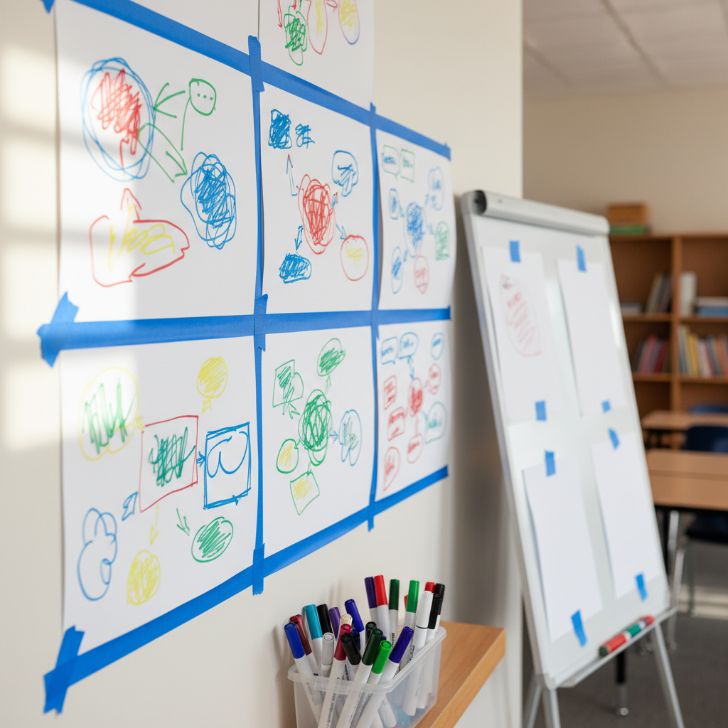 Rotate around the room to add ideas to the charts.