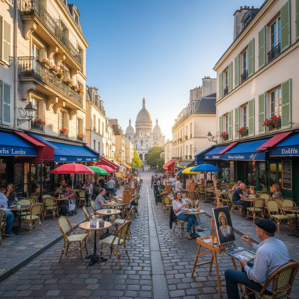 Morning: Sacré-Cœur Basilica breathtaking views. <br/>Lunch: Crêpes in Place du Tertre. <br/>Afternoon: Explore the artistic streets of Montmartre. <br/>Evening: Moulin Rouge show.