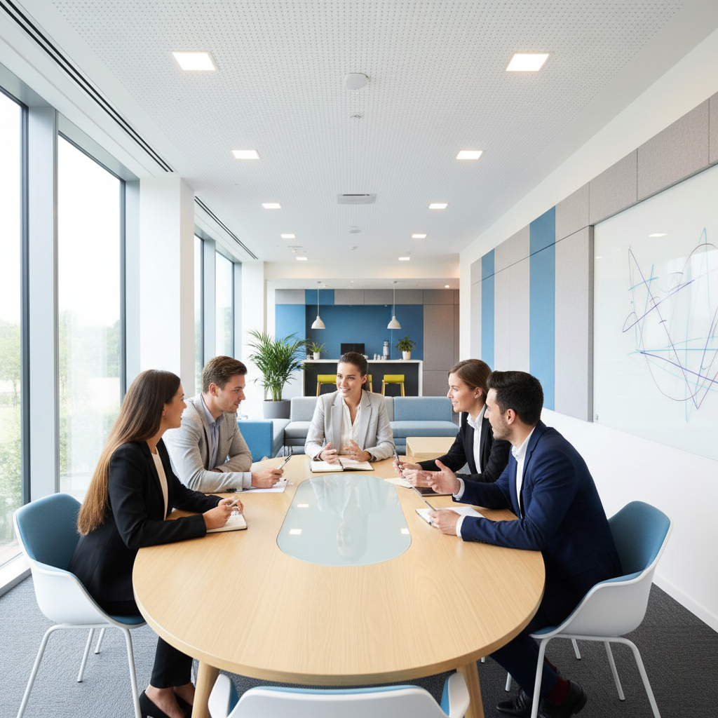 Open-plan co-working zones that foster peer learning, mentorship, and spontaneous brainstorming sessions.