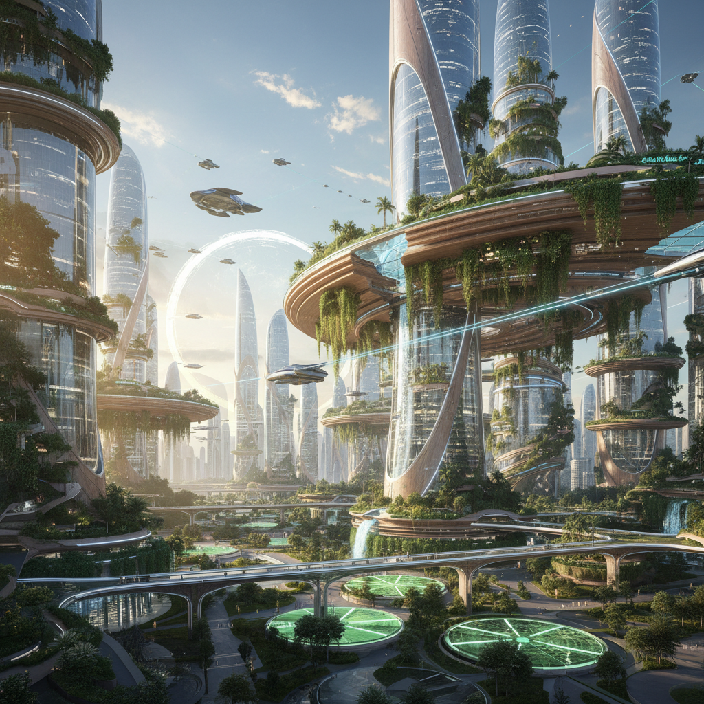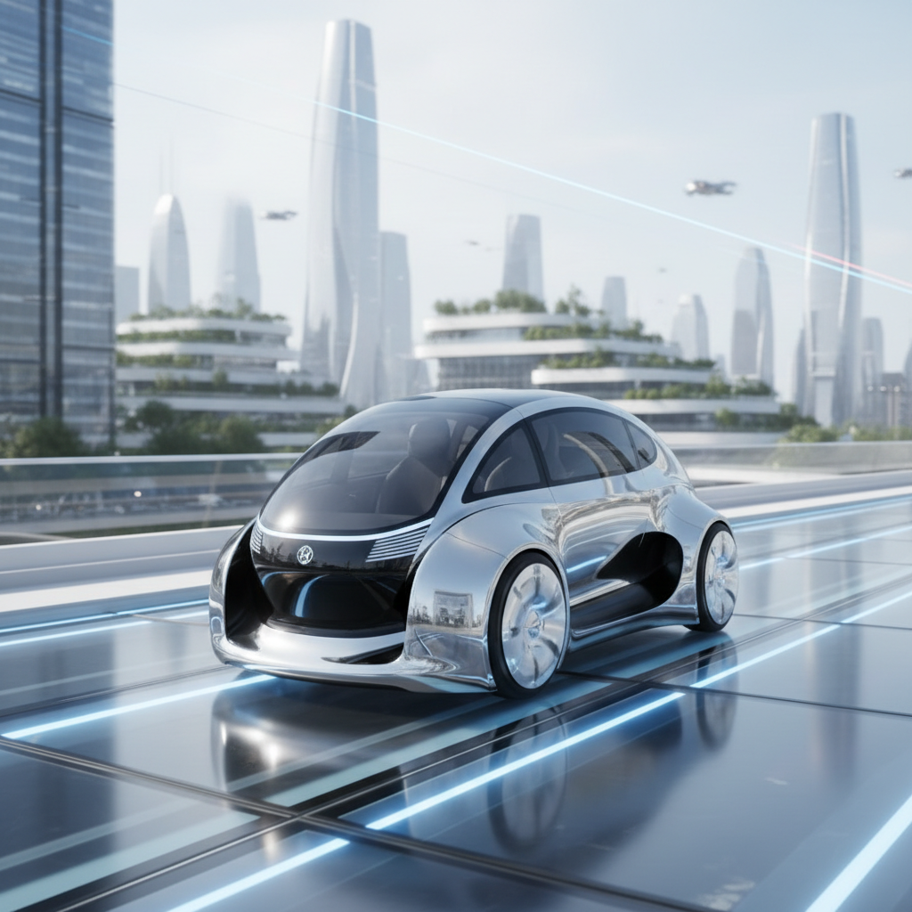 Autos fahren komplett autonom – wir müssen nicht mehr lenken. Es gibt keine Staus mehr, da alle Fahrzeuge vernetzt sind. Für weite Strecken nutzen wir den Hyperloop (Hochgeschwindigkeitszüge in Röhren) oder emissionsfreie Flugtaxis in Großstädten.
