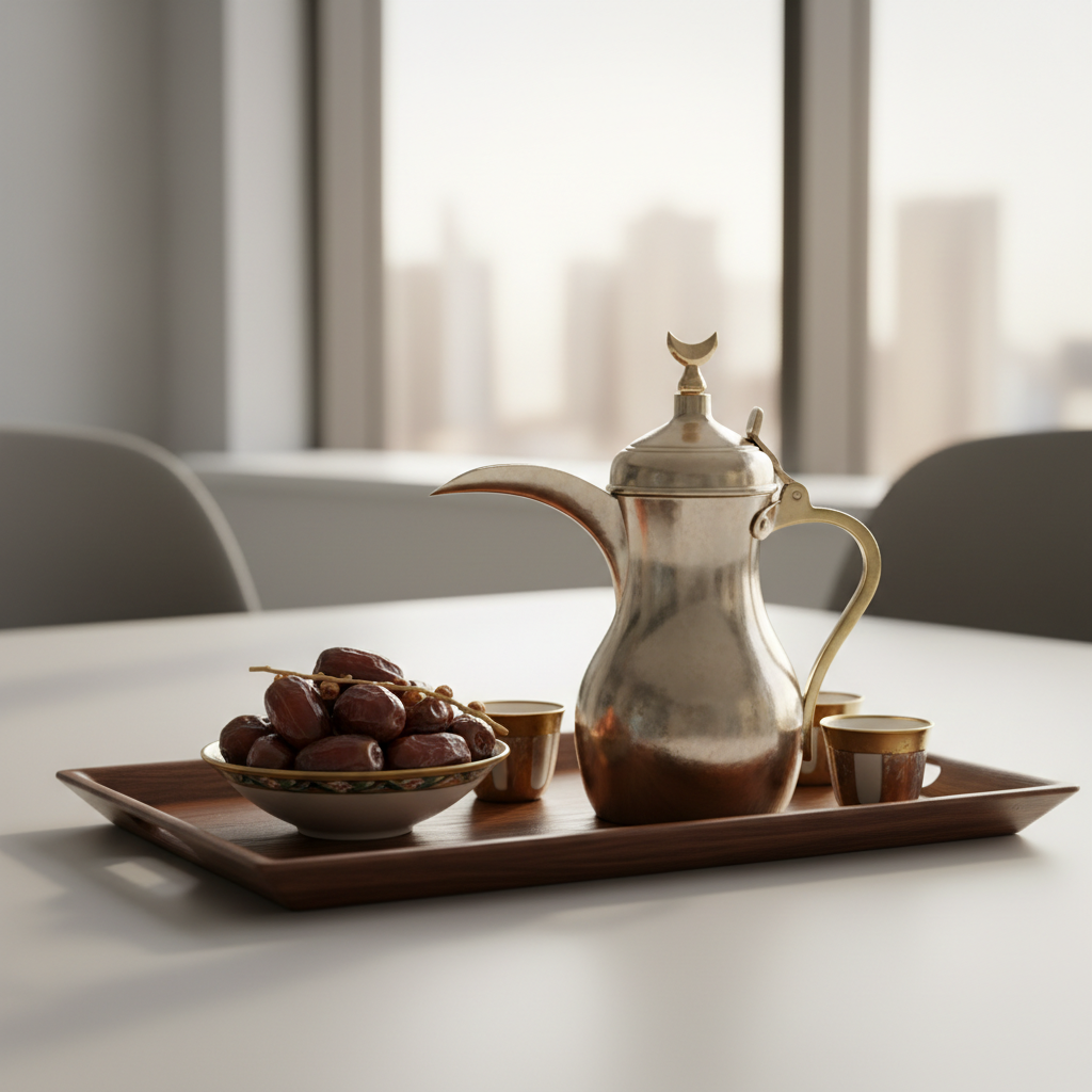 توفير قهوة عربية وتمر مع اللبن في الاستقبال أو زوايا الأقسام لتعزيز روح المودة.