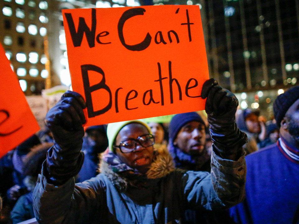 Eric Garner died during a police arrest in New York City while repeatedly saying, "I can't breathe."