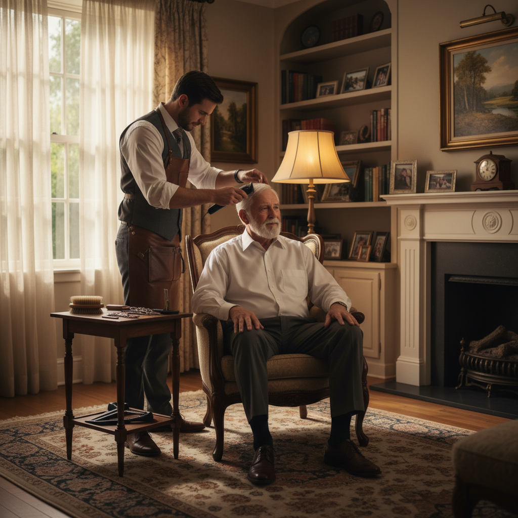 A mobile platform connecting local barbers with customers needing at-home services, specifically targeting elderly individuals and children.