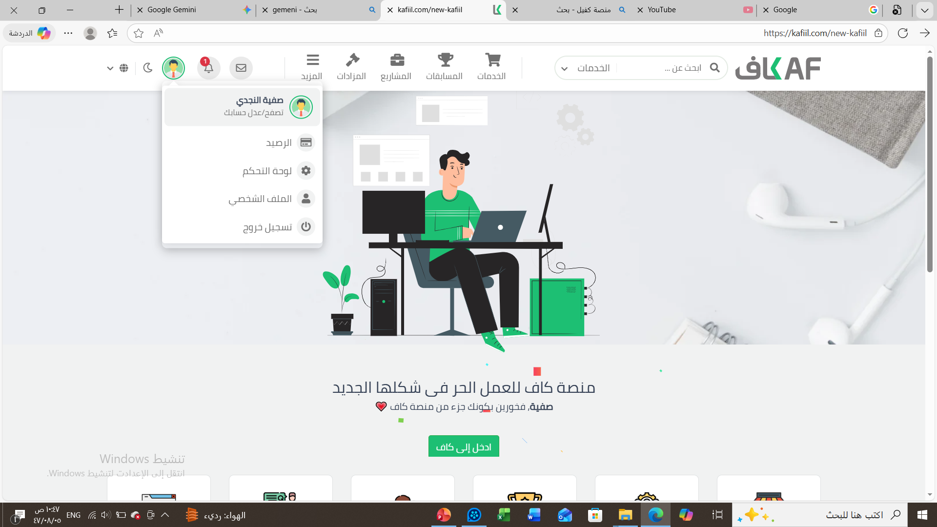 تهانينا! لقد أصبحت الآن جزءاً من منصة كفيل. يمكنك البدء في تصفح الخدمات أو إضافة مشاريعك الخاصة.