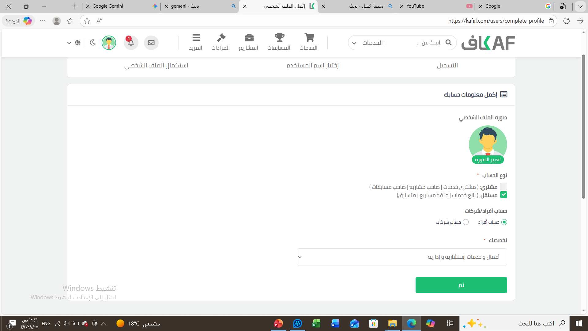 اختيار التخصص بدقة (مثل: أعمال وخدمات استشارية وإدارية) يساعد خوارزميات المنصة في إظهار المشاريع المناسبة لمهاراتك.