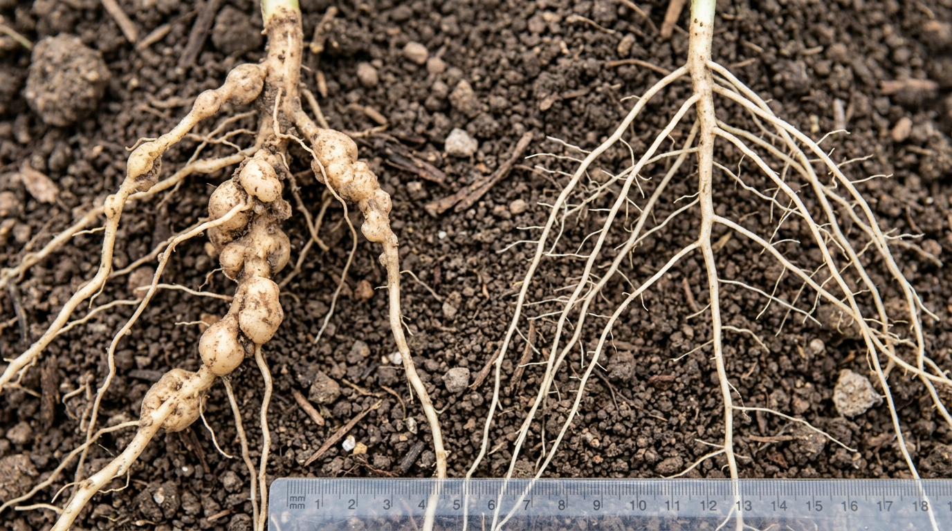 "Symptoms mimic drought stress and nutrient deficiency — often misdiagnosed in the field"