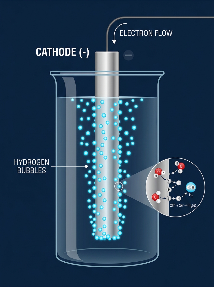 Formation abondante de bulles de H₂ à la cathode