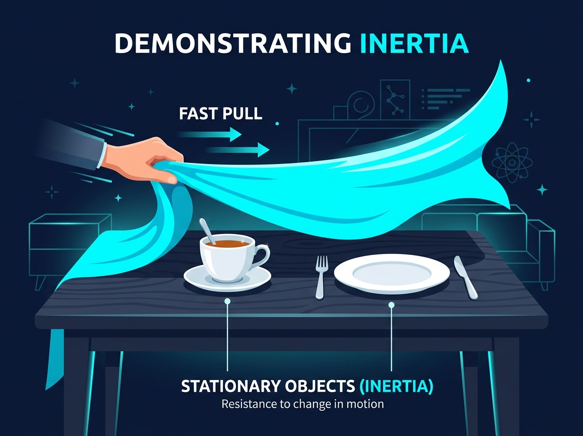 Tablecloth pull trick: Demonstrating inertia at rest