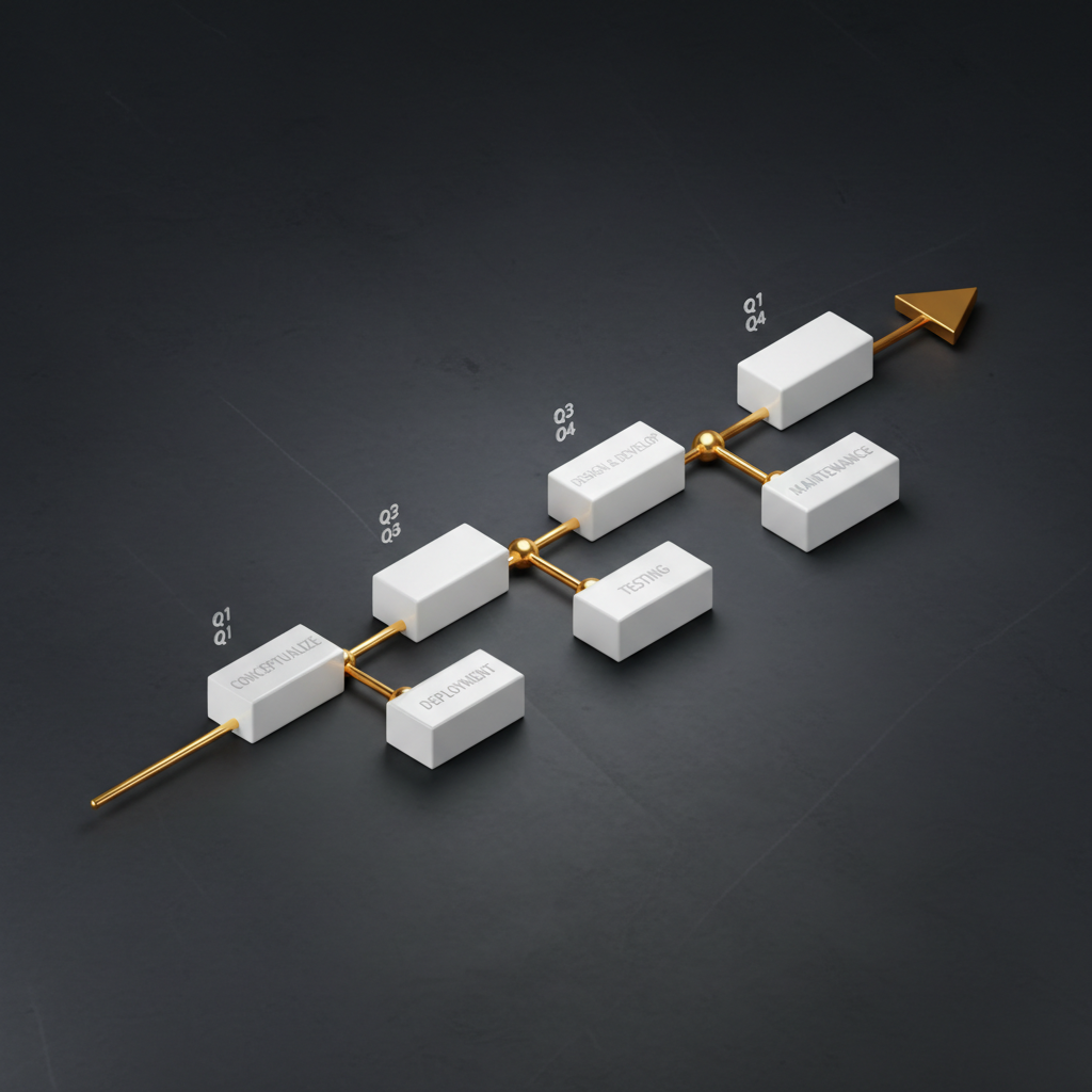 Der Projektplan ist streng symmetrisch aufgebaut, um jeder Phase die gleiche Gewichtung zu geben. Dies sichert sowohl die technische Qualität als auch die wissenschaftliche Fundierung.