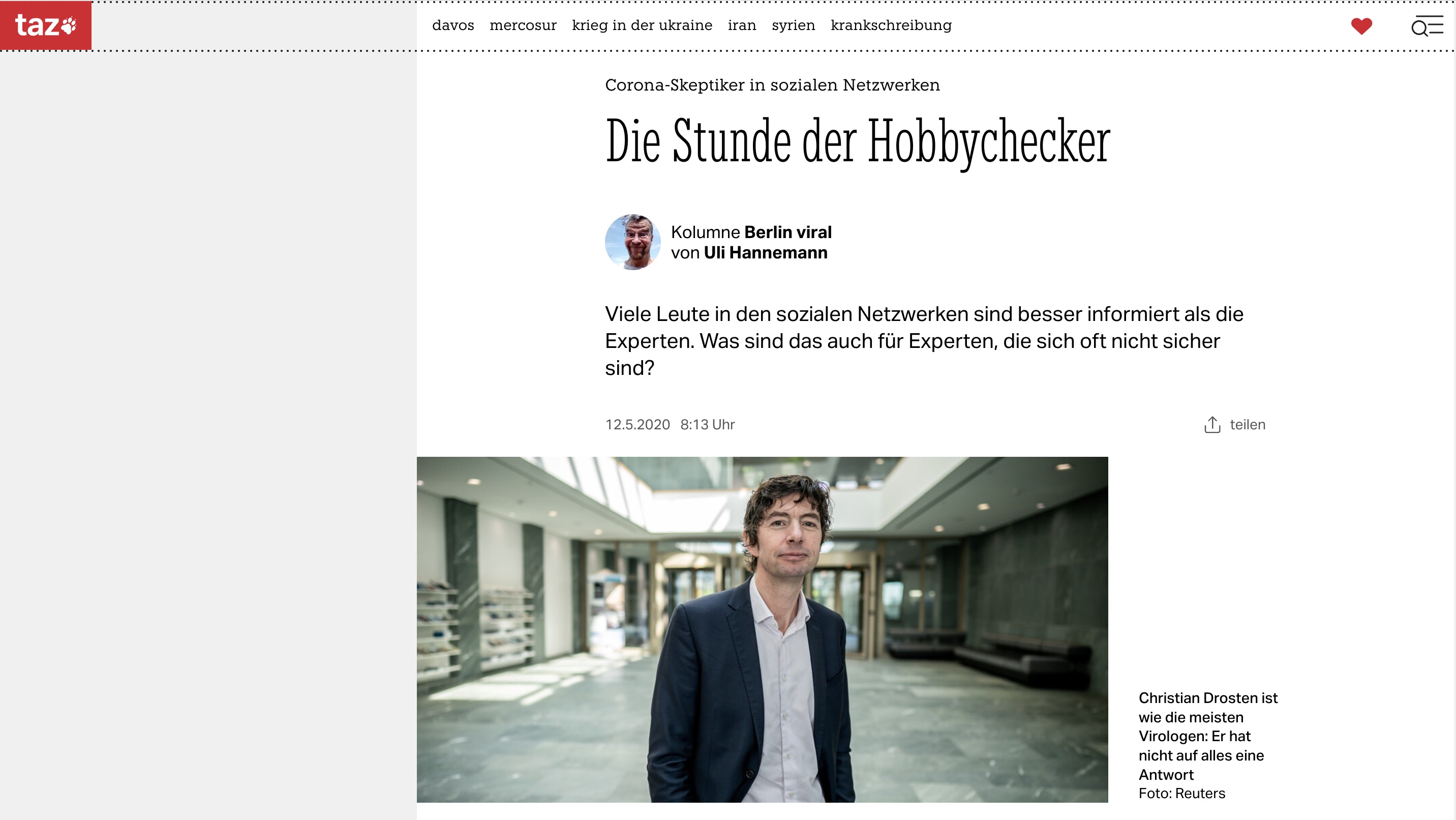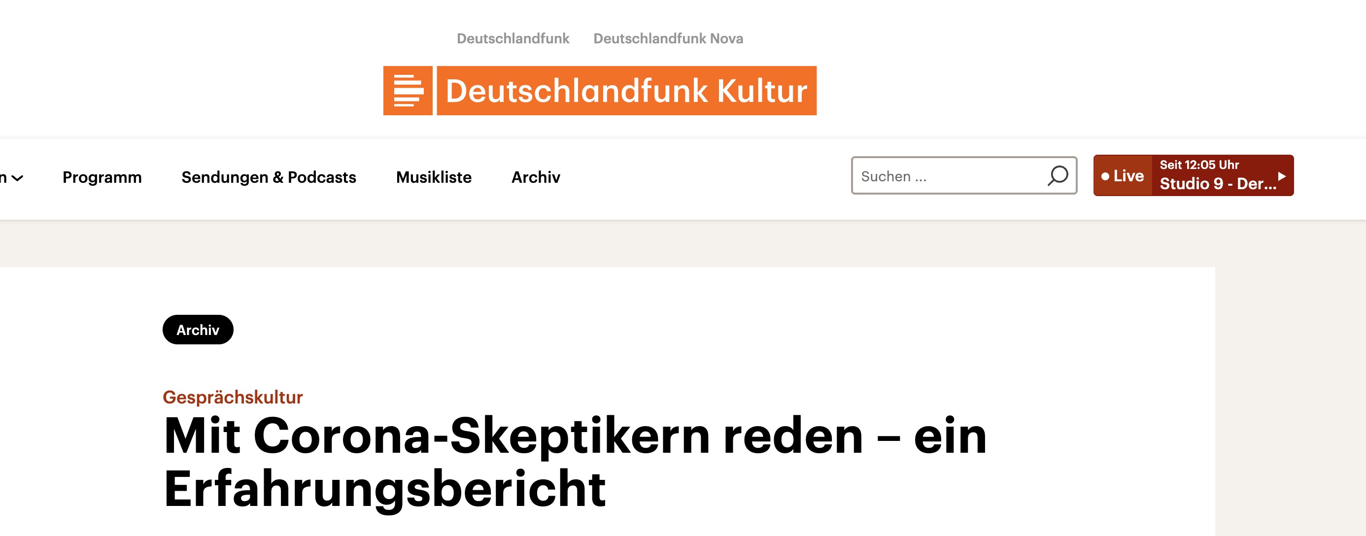 Schlagzeile: 'Mit Corona-Skeptikern reden – ein Erfahrungsbericht'