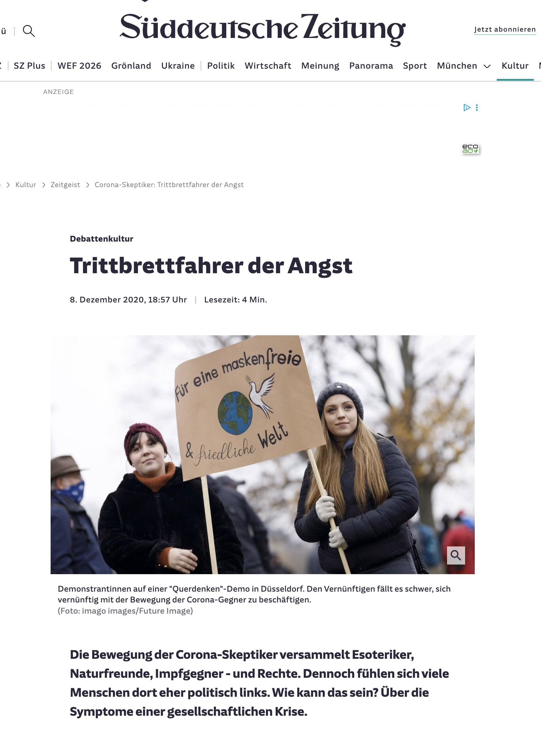 Artikel: 'Trittbrettfahrer der Angst' – Analyse der Protestbewegungen.