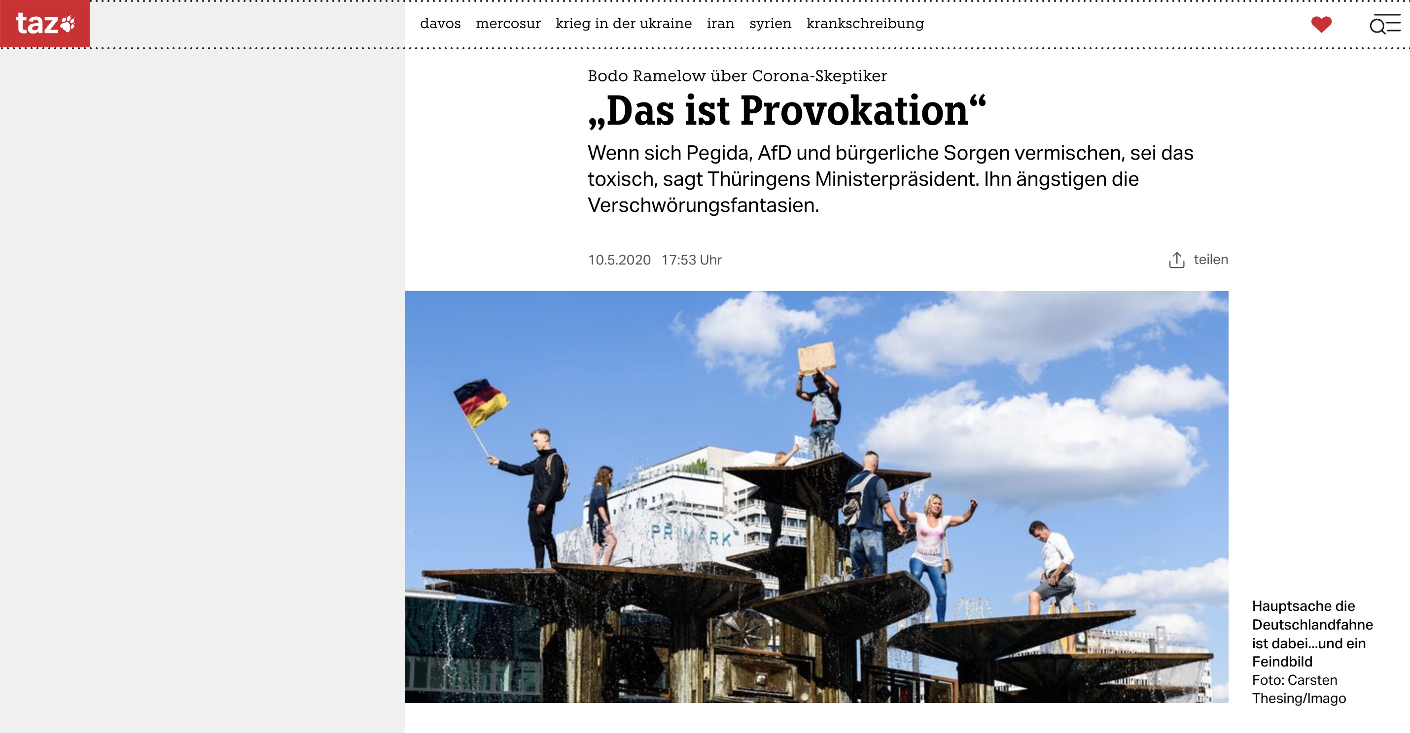 Zitat: 'Das ist Provokation' – Bodo Ramelow über die Dynamik der Proteste.