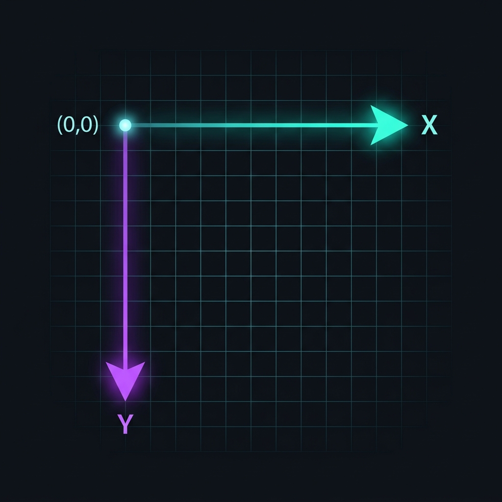 <strong>Eje Y (Vertical):</strong> El origen (0,0) se ubica en la esquina superior izquierda. El valor de Y aumenta hacia abajo — inverso al plano matemático convencional.