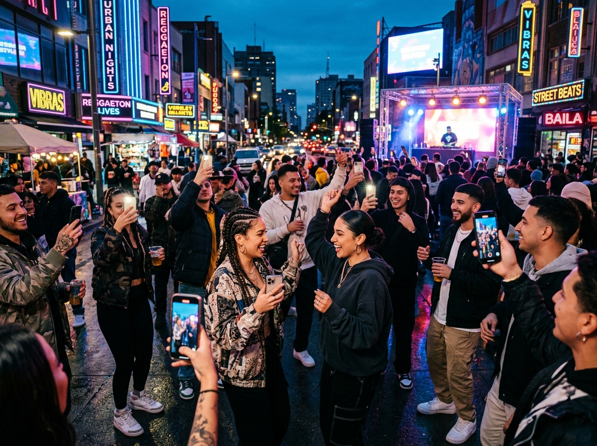 Driven by the global explosion of reggaeton and social platforms, this era embraces hyper-visibility and maximalism. Neon lighting and vibrant aesthetics dominate contemporary urban expression.