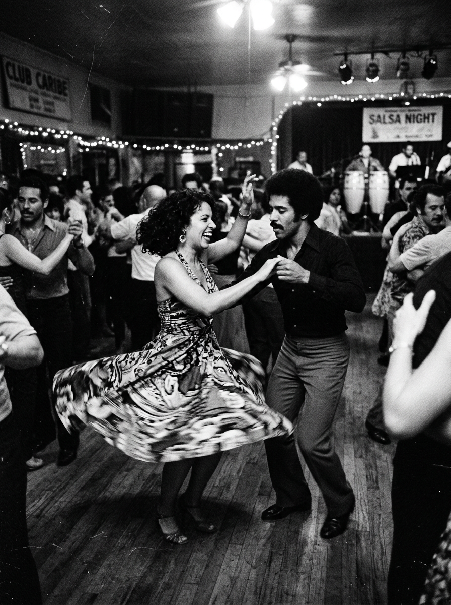 This period witnessed a vibrant cultural blending as communities settled in urban diasporas like New York. The bold, rhythmic energy of salsa and vivid street fashion shaped a new hybrid visual language.