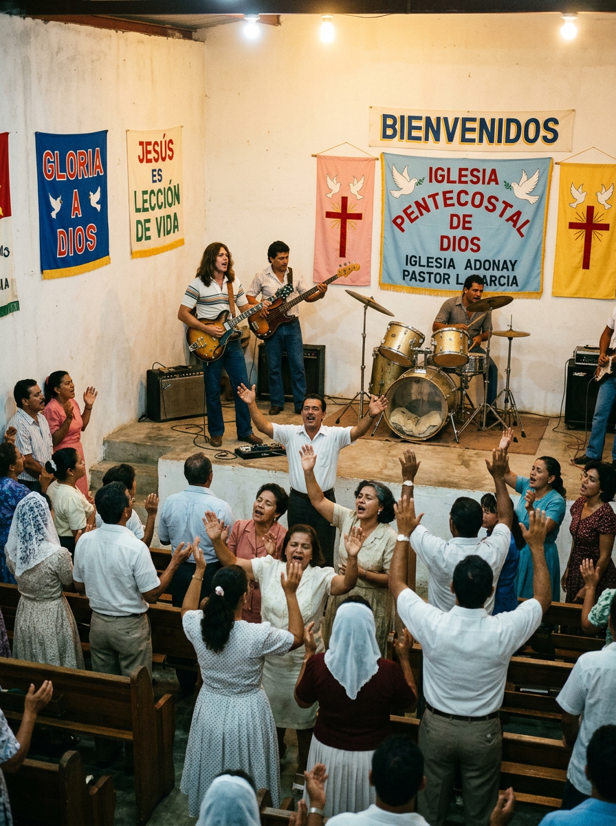 Image: Pentecostal worship service, Puerto Rico. Photo credit: Various / religious documentary archives.