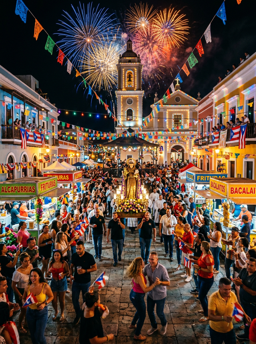 Every Puerto Rican municipality celebrates the feast day of its patron saint with a fiesta patronal that lasts several days. This is Puerto Rico's most enduring and complete aesthetic form: it integrates music, dance, religious ceremony, food, visual decoration, theater, and community participation into a single event. The entire town becomes a stage; every citizen is simultaneously performer and audience. The fiesta patronal is the original Puerto Rican spectacle — the model that all subsequent generations would secularize and amplify.